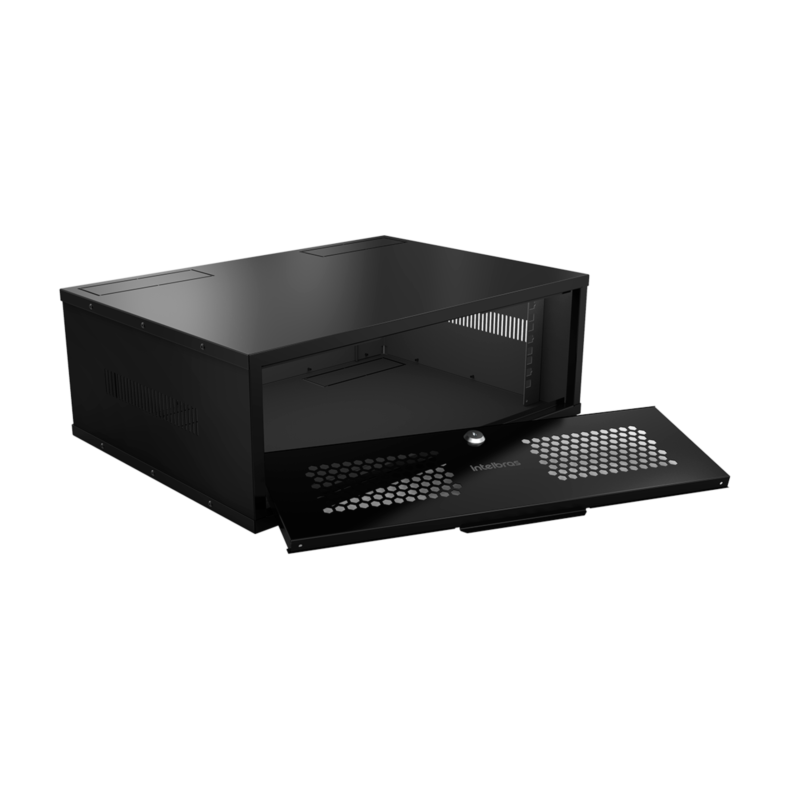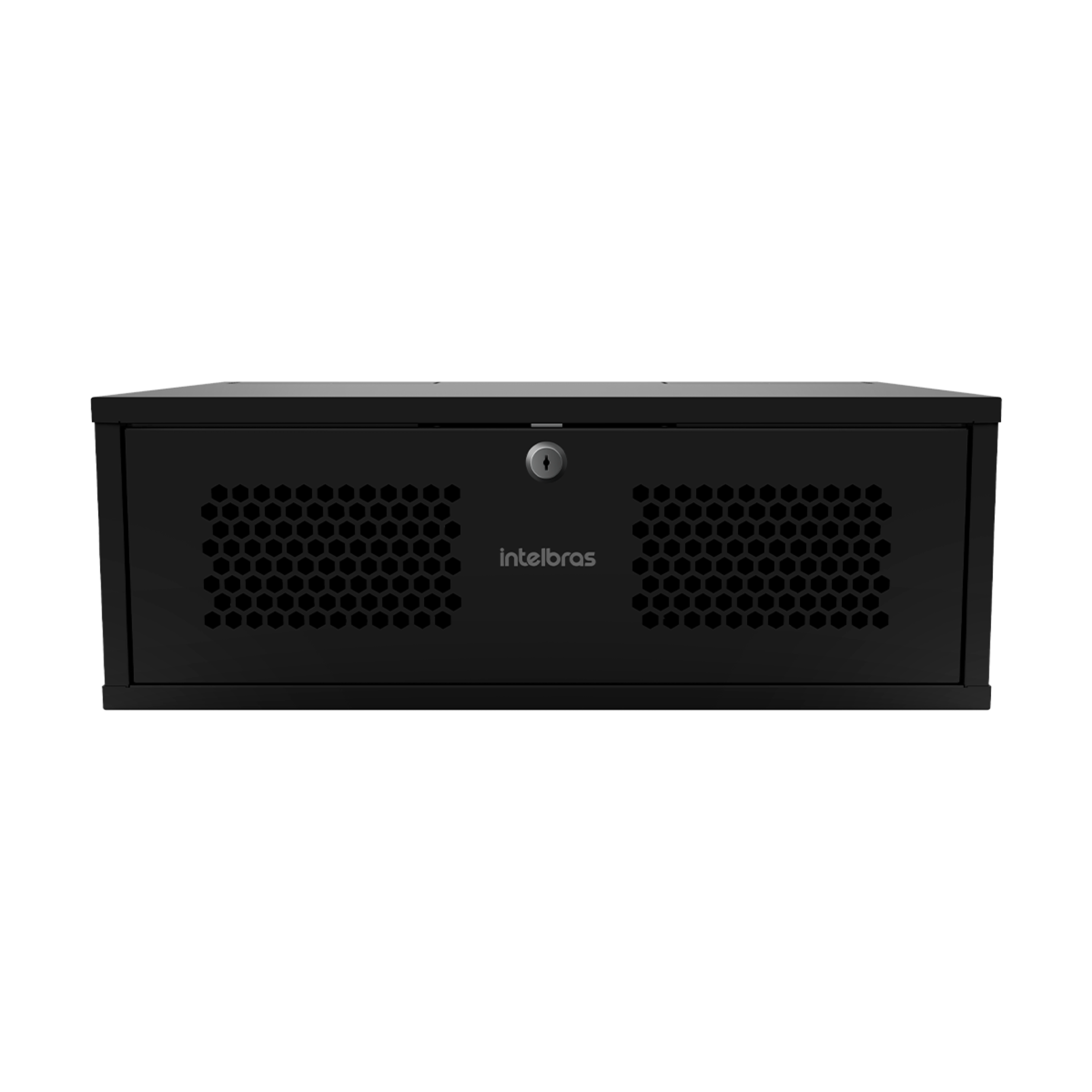 Mini-rack Intelbras MRM 337: gabinete metálico de pared 19″, altura 3U, profundidad útil 370 mm. Está pensado para alojar equipos de red, DVR/NVR, switches u otros dispositivos de telecomunicaciones en entornos domésticos, oficinas o comercios.
