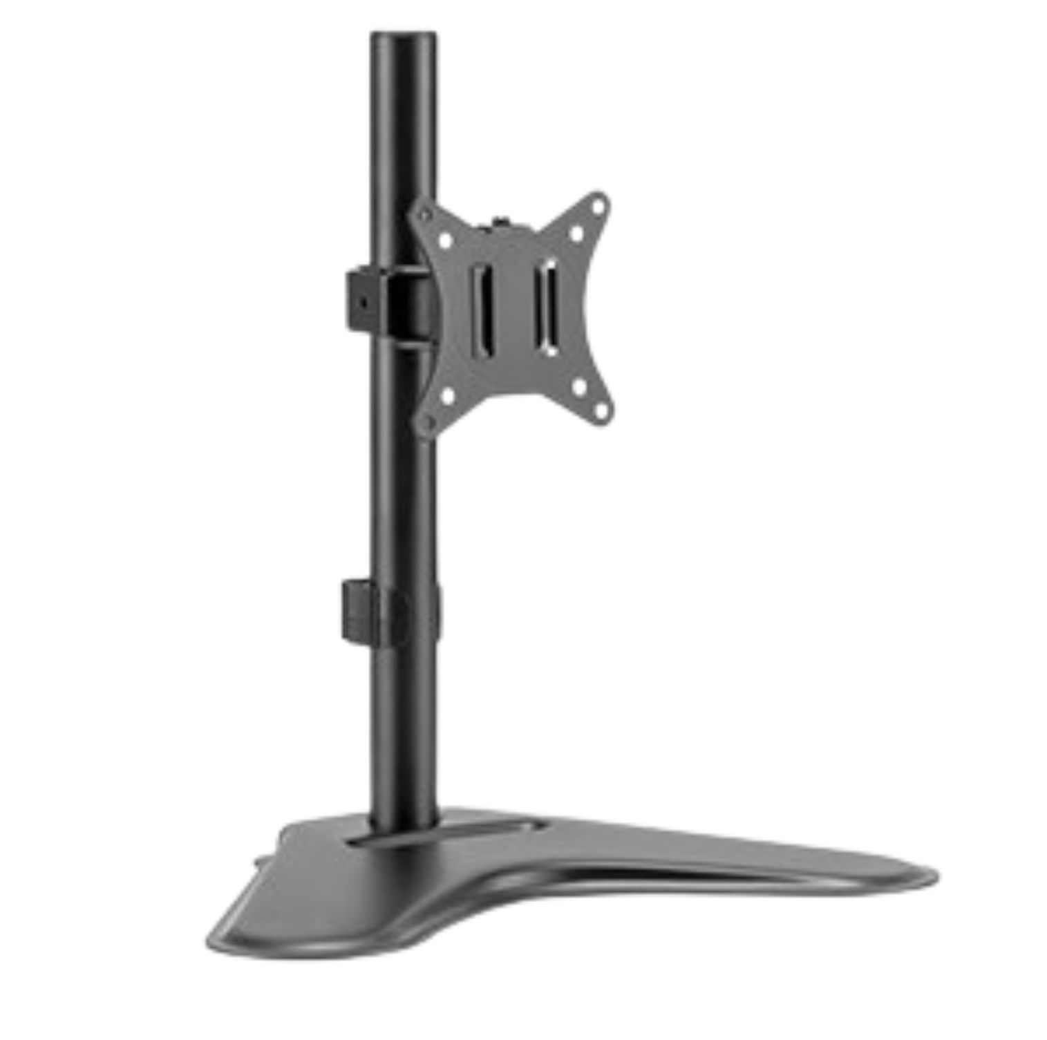 Con una estructura de acero duradera, el LDT66-T01 proporciona un soporte estable para un solo monitor de 17″ a 32″ de hasta 9 kg (19,8 lbs). Diseño flexible para ajuste y ángulos de visión amplios, ajustable para la orientación vertical u horizontal. La base independiente proporciona estabilidad y apoyo en cualquier superficie de trabajo.