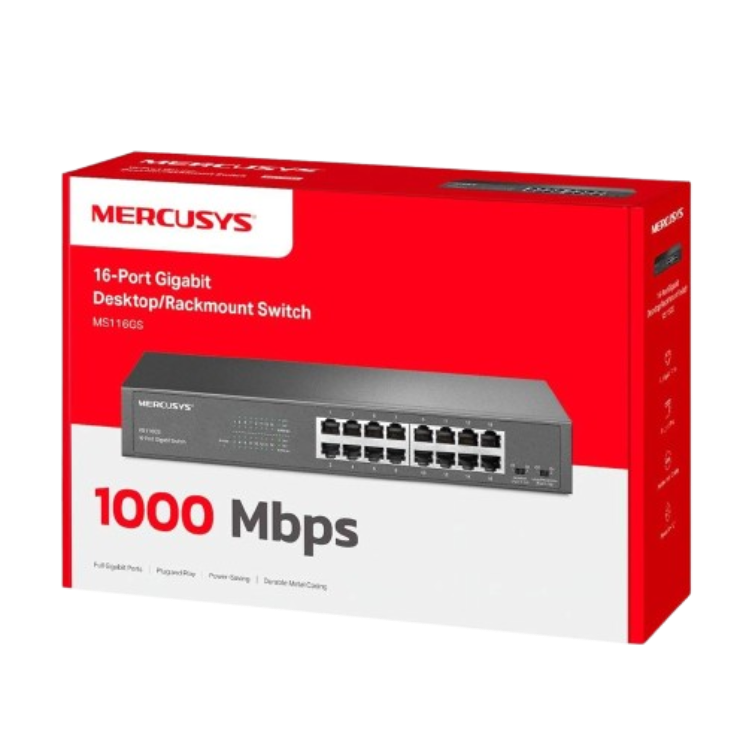 El Mercusys MS116GS es un switch no gestionado de 16 puertos Gigabit, diseñado para redes cableadas de mayor tamaño en entornos domésticos y empresariales. Ofrece alto rendimiento, estabilidad y facilidad de uso sin necesidad de configuración.